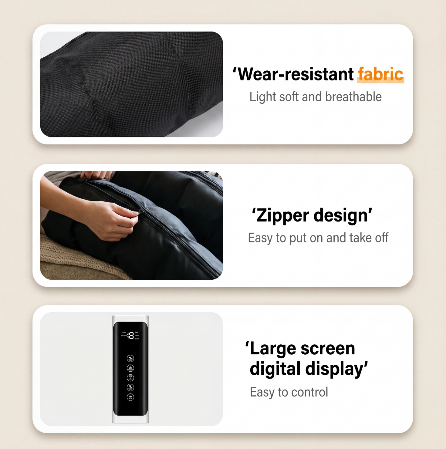 Ce masseur est parfait après mes entraînements: il détend profondément les muscles des jambes, réduit les tensions et je sens vraiment mes jambes plus légères et reposées.